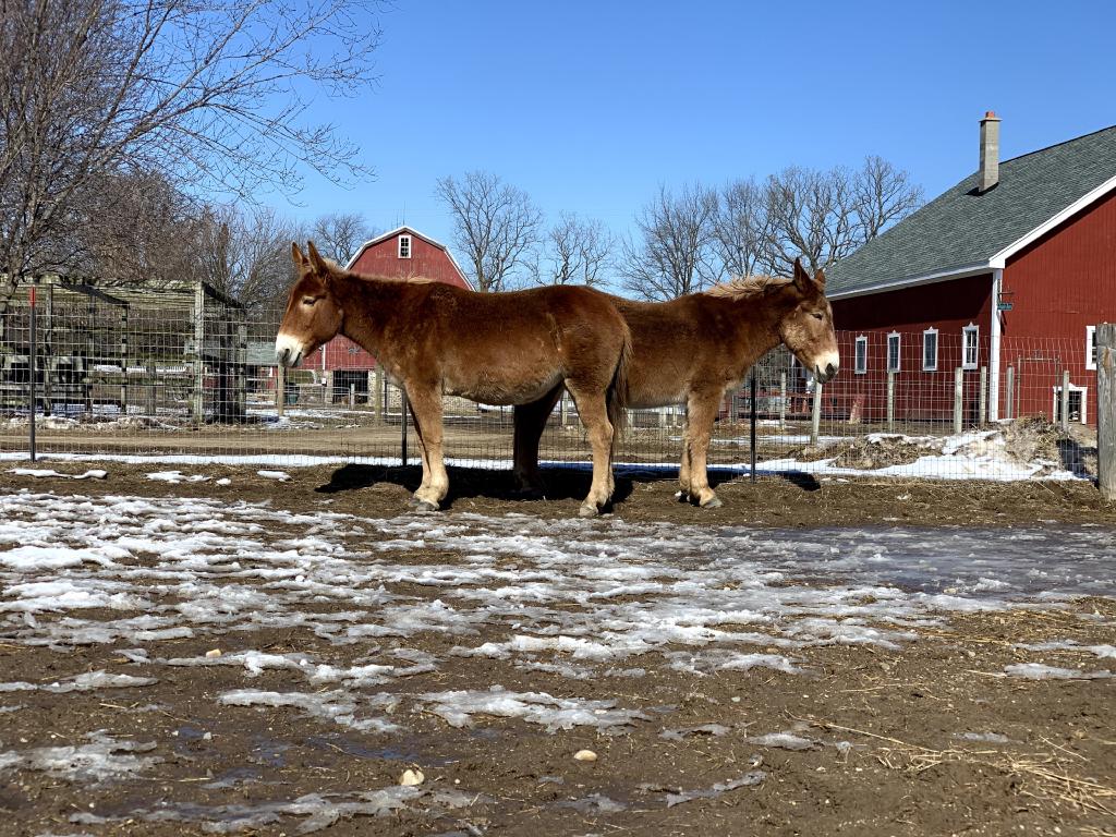 SASHA Farm received information about 3 equines that had no place to go and time was running out. The people who cared for these 3 animals had fallen on very hard times and their property was being foreclosed on, so they had to move, and the horse and mules could not go with them. We did not want to see these beautiful animals end up in uncertain circumstances, so Dorothy Davies and Monte Jackson drove to the Gaylord MI area to pick them up. Now, 5 years later, they are safe and happy at SASHA Farm. Brute is a sweet horse and has a little bit of sass. Walker and Angel are super gentle mules and like two peas in a pod