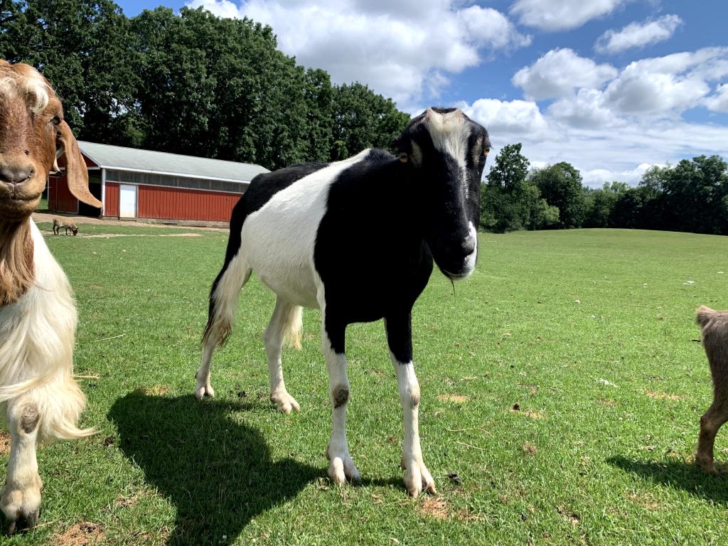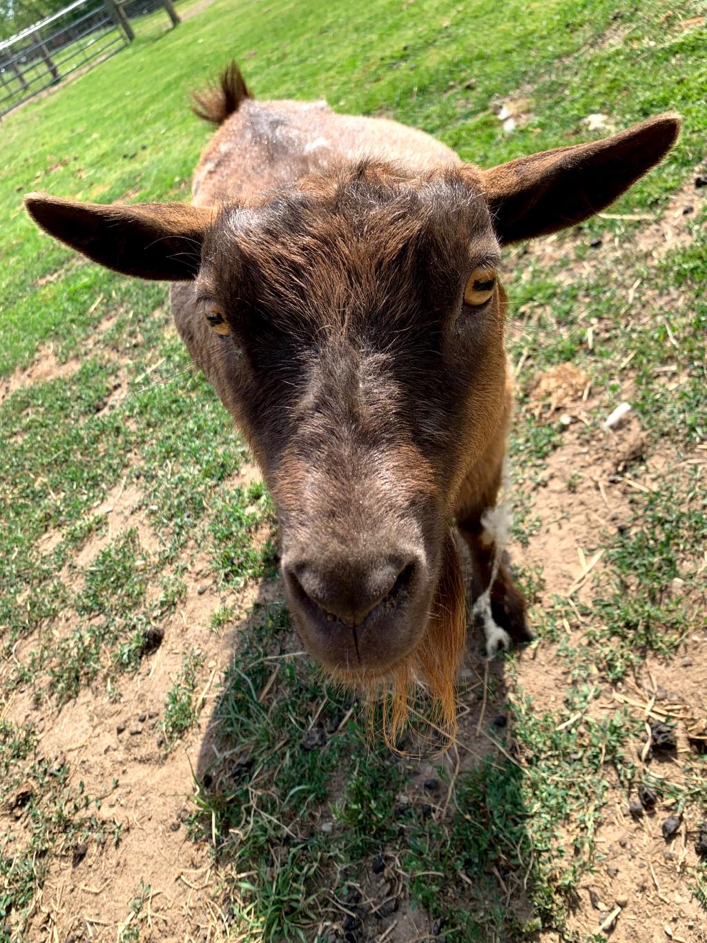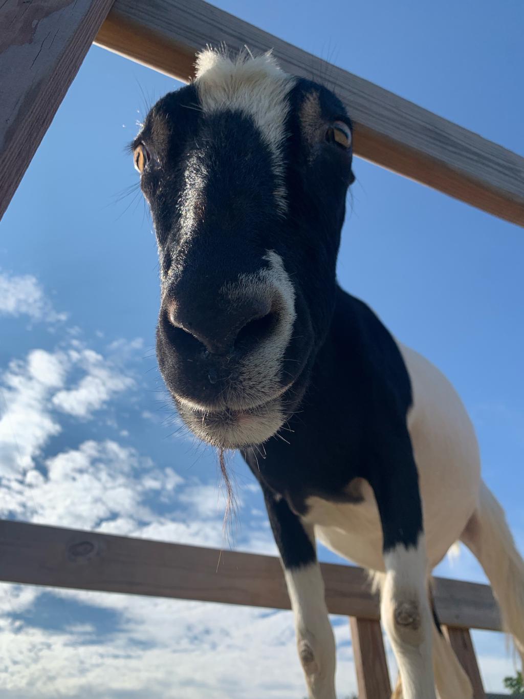 These two arrived on October 10th, 2019 after being surrendered by an aging loving owner who could no longer care for them. Jazzy is a pygmy mix and is pictured on the left. Gizmo, pictured right, is a very curious and loving LaMancha goat.