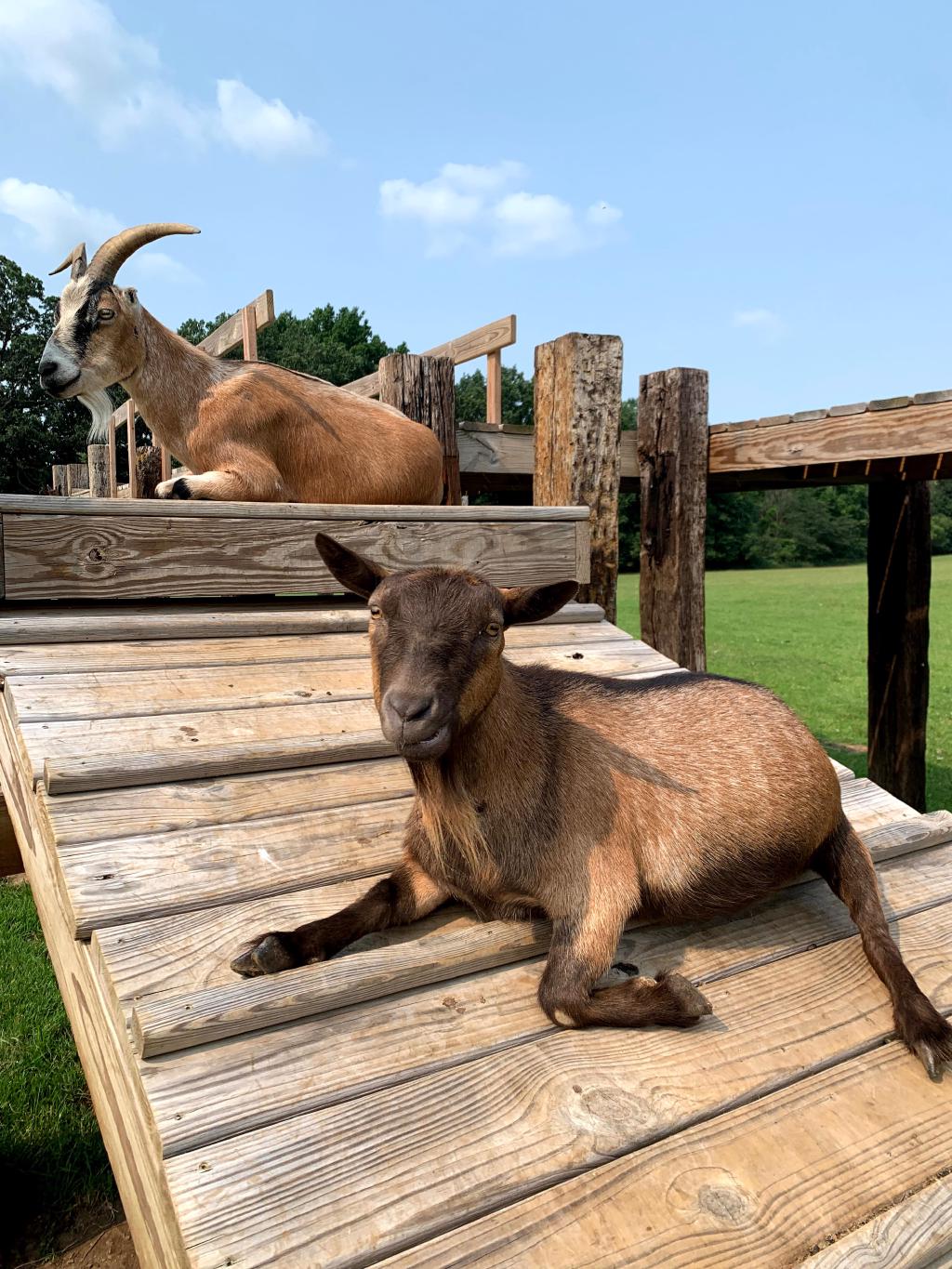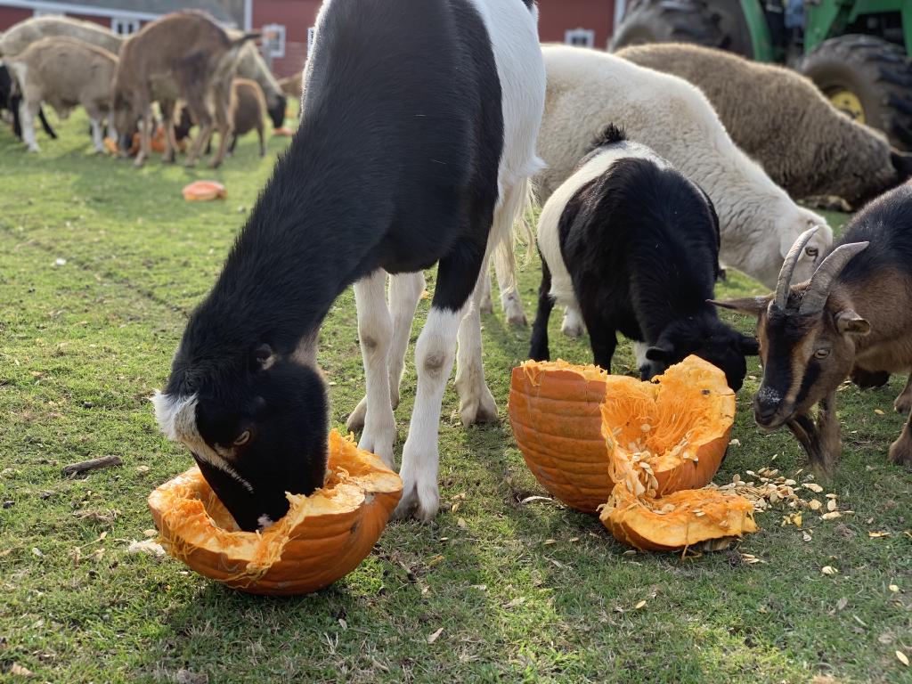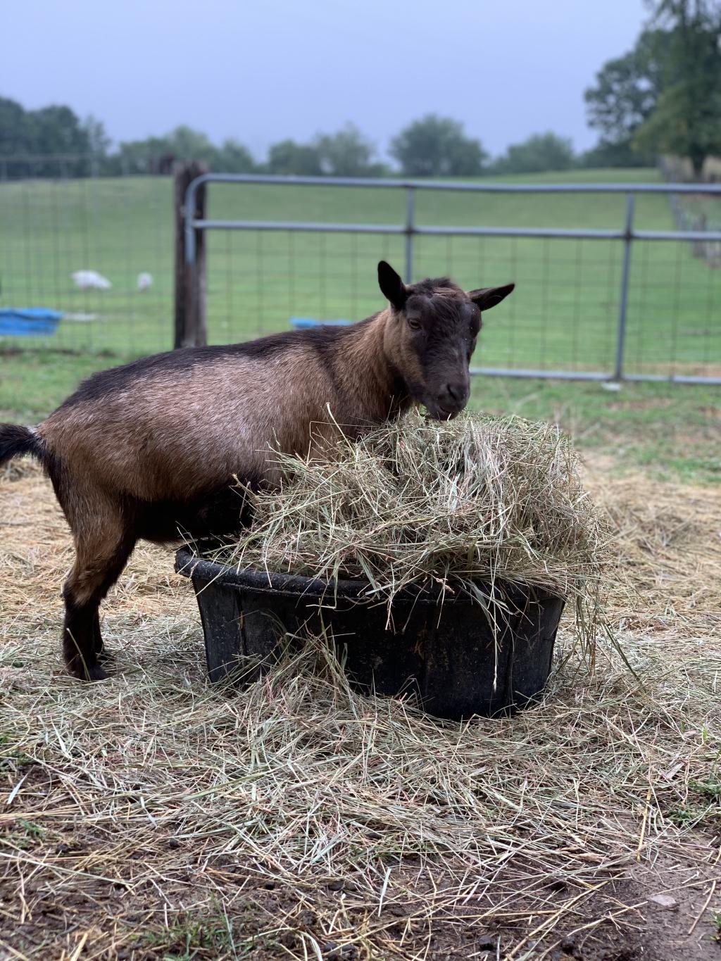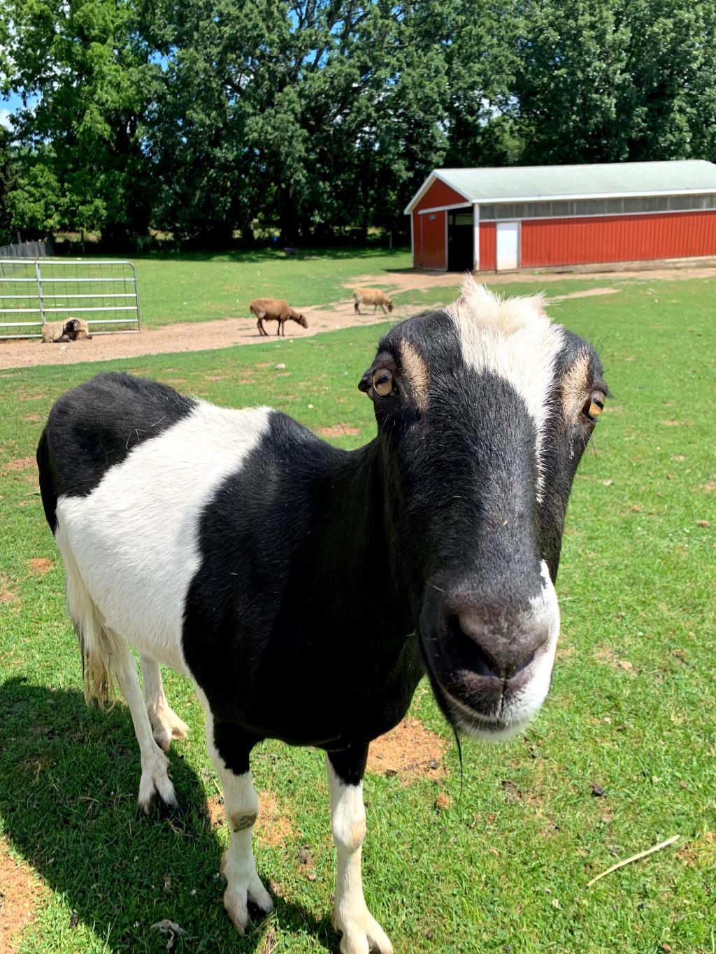 These two arrived on October 10th, 2019 after being surrendered by an aging loving owner who could no longer care for them. Jazzy is a pygmy mix and is pictured on the left. Gizmo, pictured right, is a very curious and loving LaMancha goat.